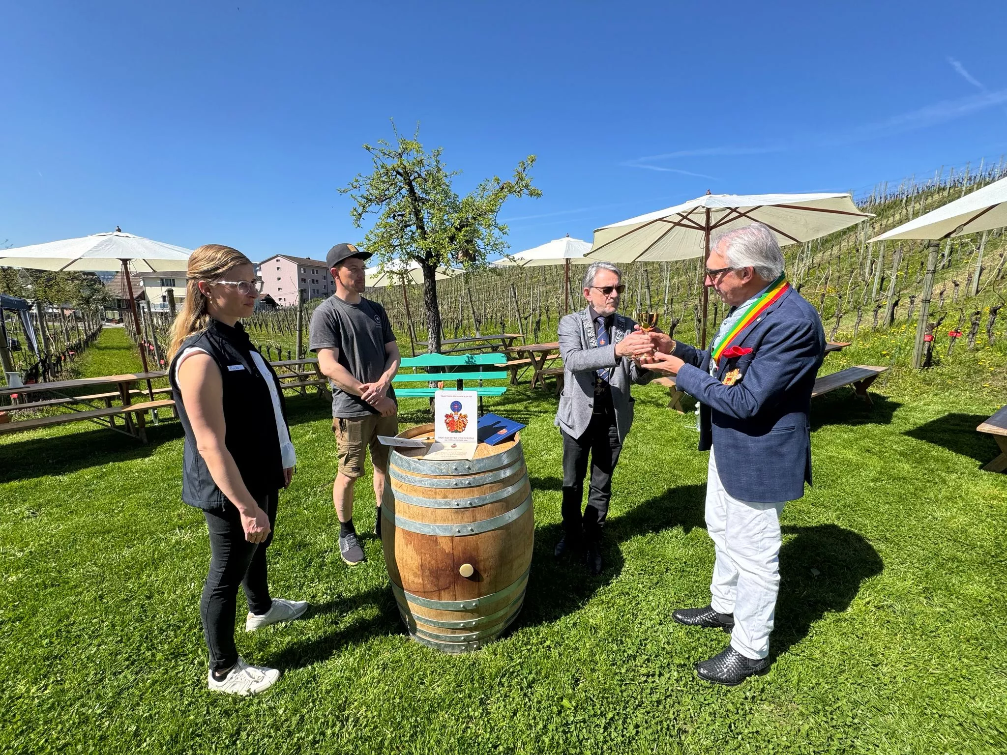 Die Weinritter sind fasziniert und zeichnen Priscilla und Noel Huwiler zu Vigneron Consulaire.